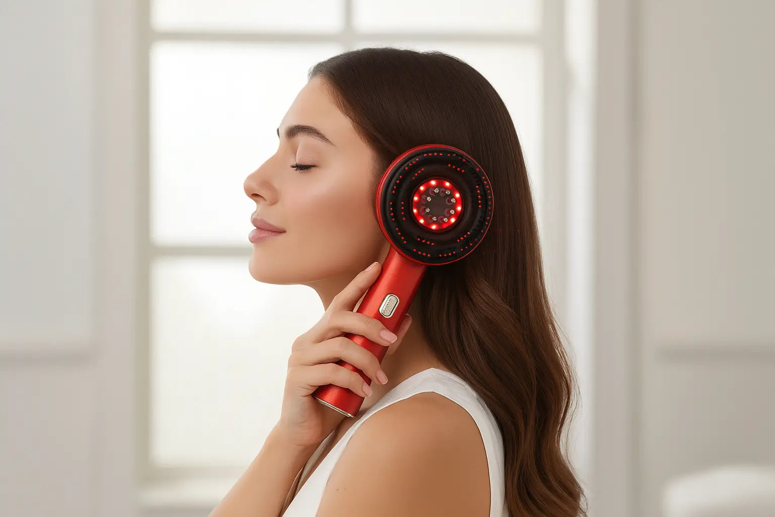 The 630 nm red light penetrates deeply, enhancing cell regeneration and circulation. Combined with a soothing massage, it promotes healthy hair growth by nourishing follicles and relieving stress, creating a spa-like experience at home.